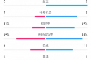 开云体育官网-马竞0-1巴萨半场数据:射门1-10,射正0-2,控球率31%-69% xiaoqiao 2025年09月11日 16:15 111 0 体育资讯4月3日讯 国王杯半决赛次回合,马竞主场半场0-1巴萨,总比分4-5。双方半场数据对比如下↓ 射门1-10 射正0-2 得分机会1-3 控球率31%-69% 传球成功率69%-88% 犯规6-11 黄牌4-1 角球2-5